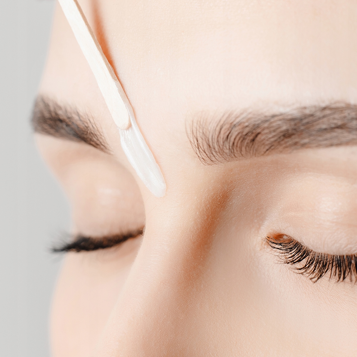 Podgrzany wosk lub inny przygotowany/gotowy preparat kosmetyczny wymieszać szpatułką, następnie nabrać na szpatułkę i rozsmarować warstwę preparatu na powierzchni skóry w wybranym miejscu.