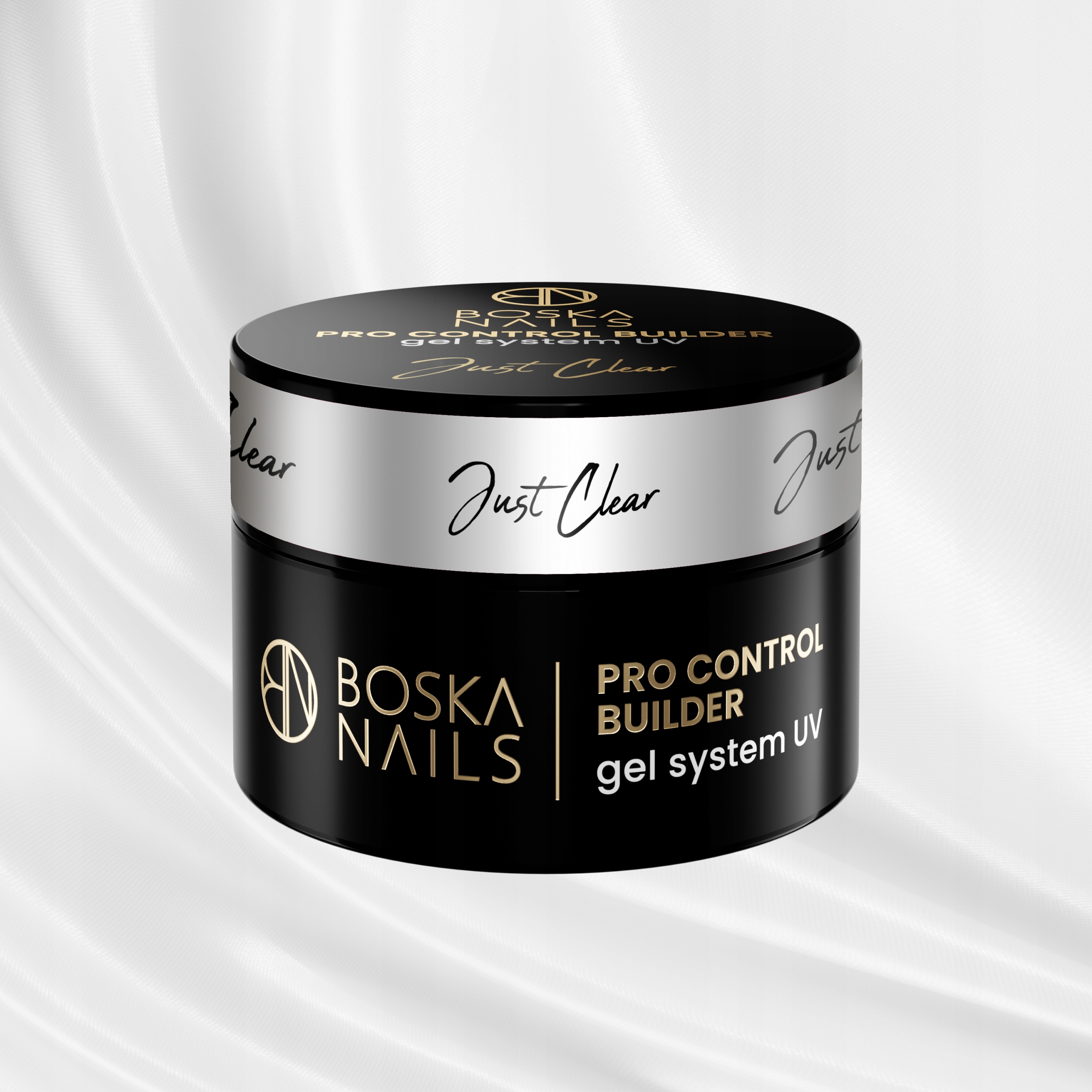 Just Clear Pro Control Builder Gel System UV 15ml Boska Nails o transparentnej barwie.