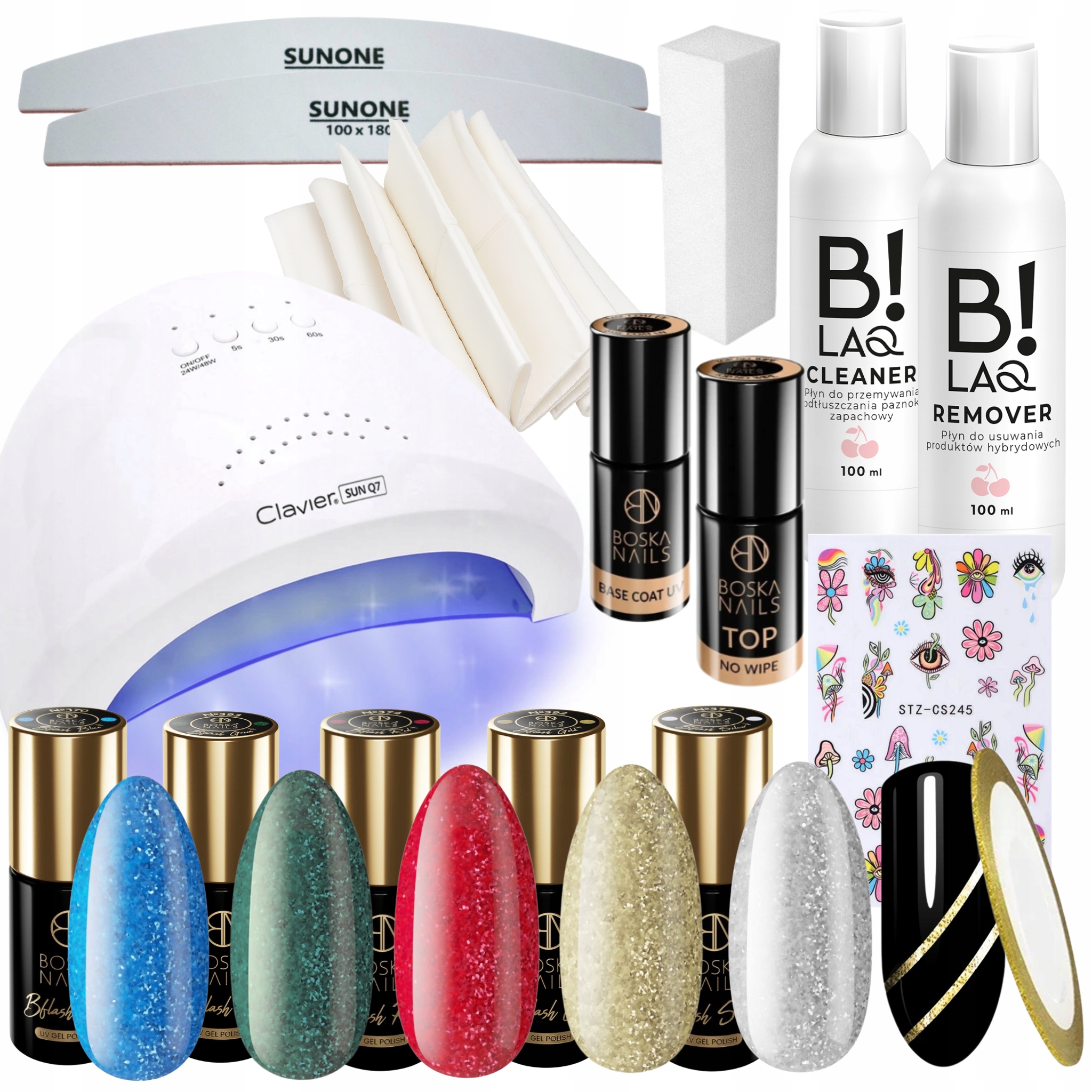 Boska Nails Świąteczny zestaw startowy do paznokci - lampa UV/LED 48W + 5x lakier hybrydowy + preparaty + akcesoria