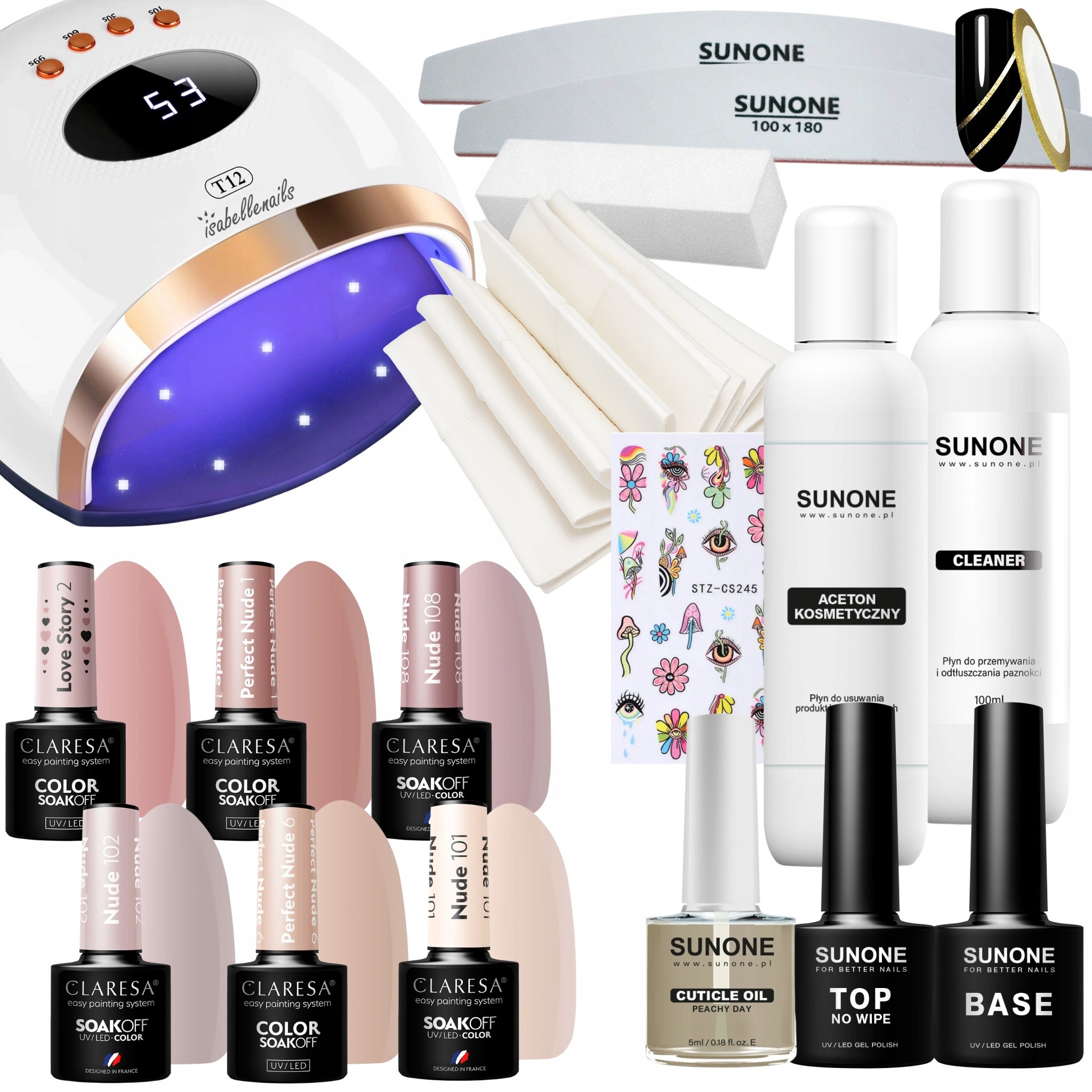 Claresa Świąteczny zestaw startowy do paznokci - lampa UV/LED 158W + 6x lakier hybrydowy + preparaty + akcesoria