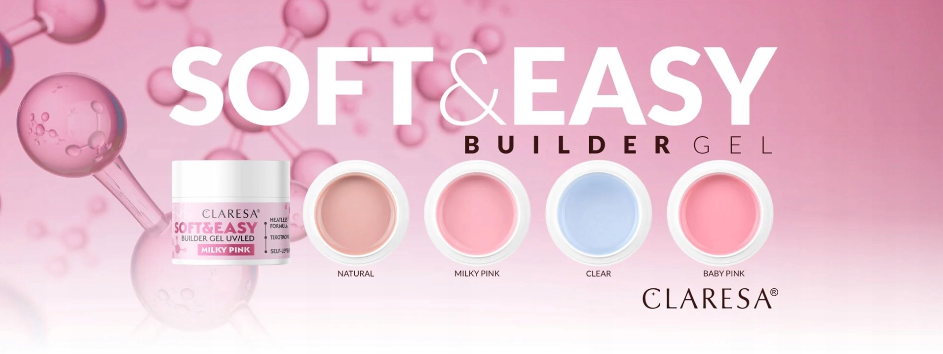 SOFT&EASY BUILDER GEL występuje w 5 użytkowych kolorach: