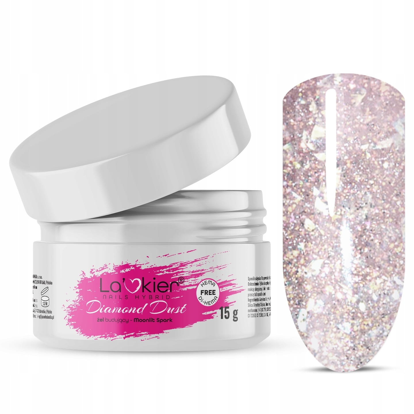 La’kier Diamond Dust Moonlit Spark Hipoalergiczny samopoziomujący żel budujący do paznokci z efektem Flash 15g