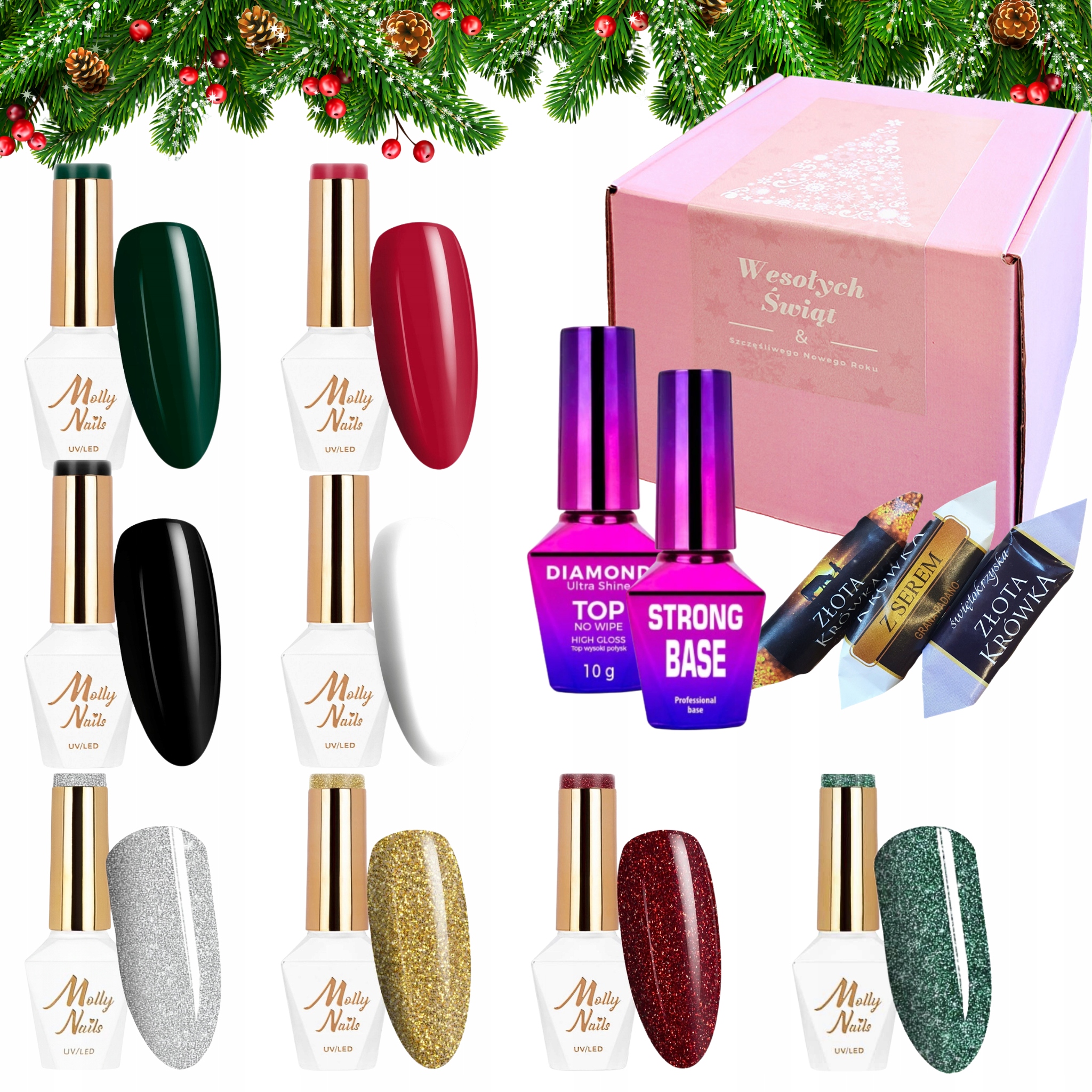Molly Nails Świąteczny zestaw do paznokci hybrydowych + gratis