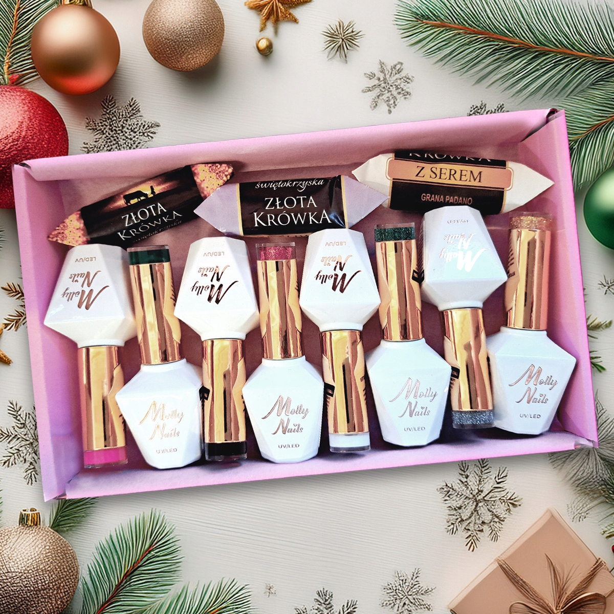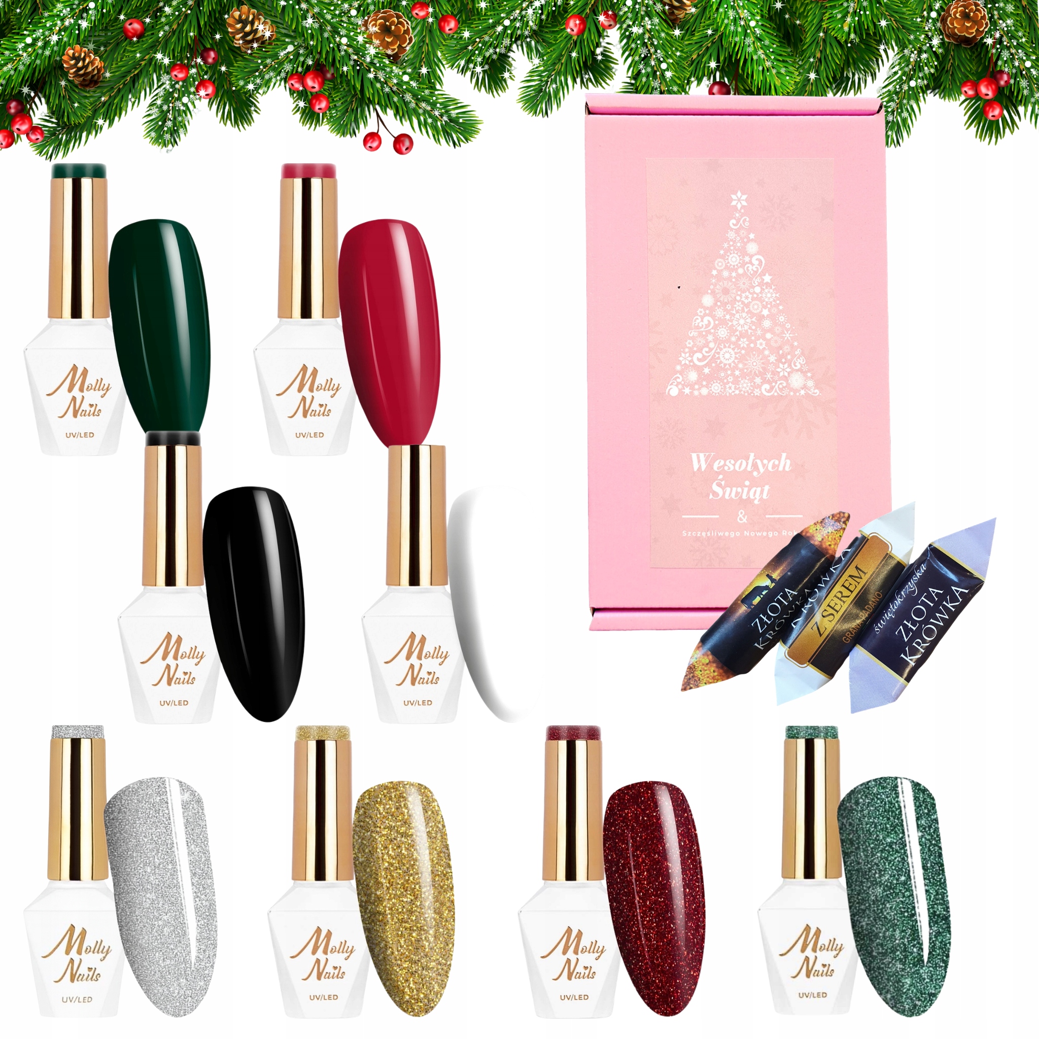 Molly Nails Świąteczny zestaw do paznokci hybrydowych + gratis