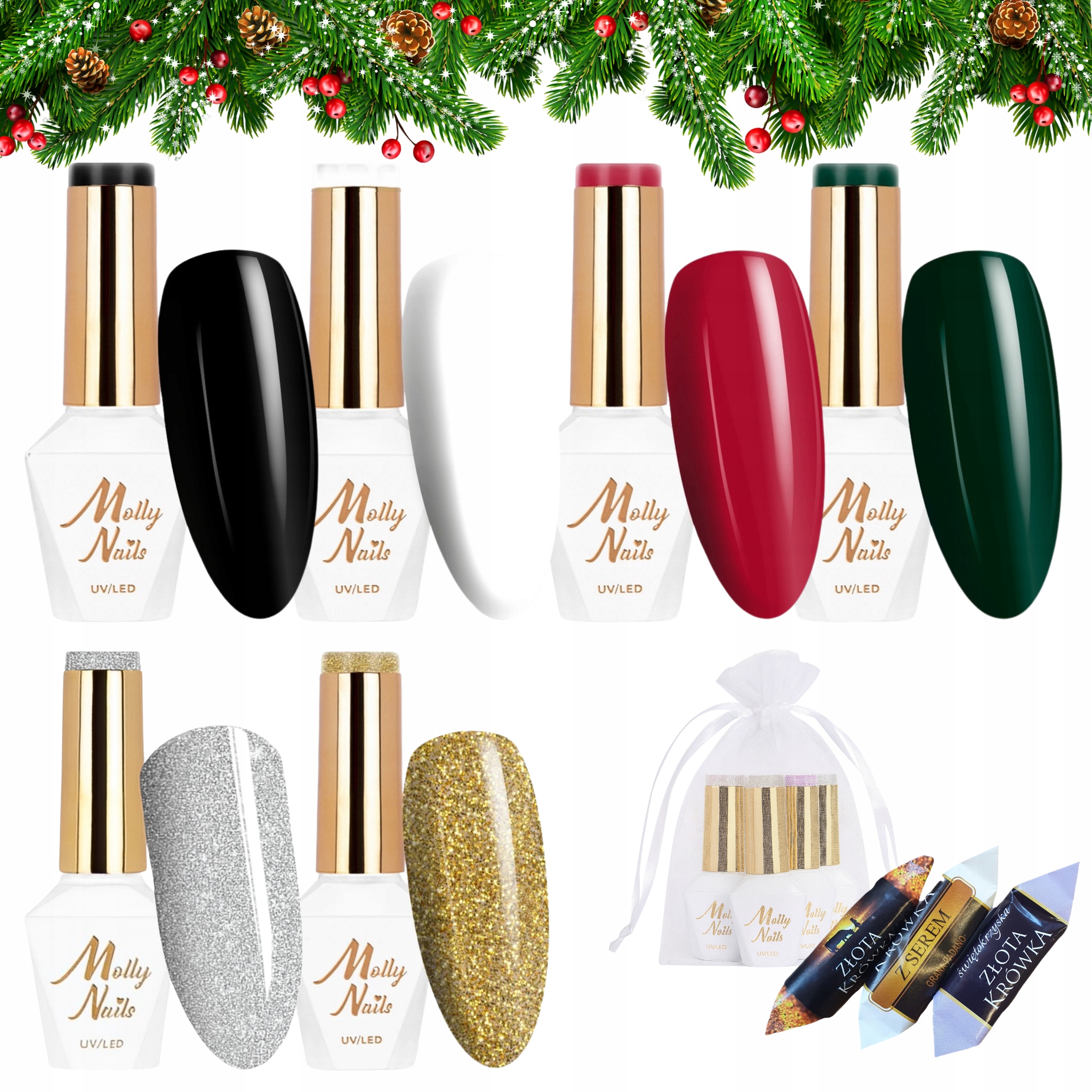 Molly Nails Świąteczny zestaw do paznokci hybrydowych + gratis
