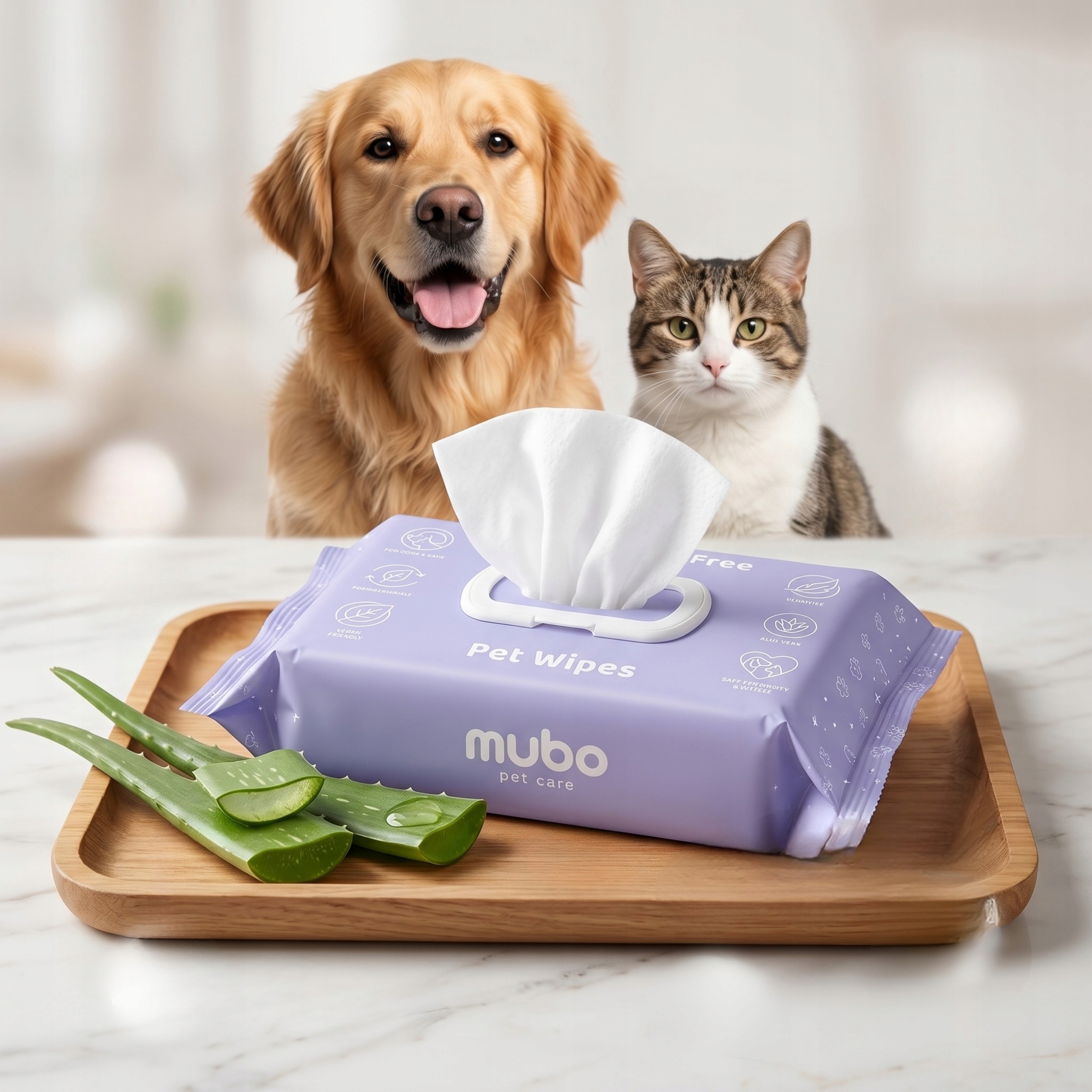 Czysta sierść i zdrowa skóra bez wody, bez zapachu i bez stresu – Mubo Fragrance Free Pet Wipes to bezzapachowe chusteczki nawilżane z aloesem, stworzone specjalnie dla psów i kotów o wrażliwej skórze i delikatnym węchu. Sto dużych, grubych chusteczek 15x30 cm w szczelnym opakowaniu z klapką – w domu, w podróży i po każdym spacerze.