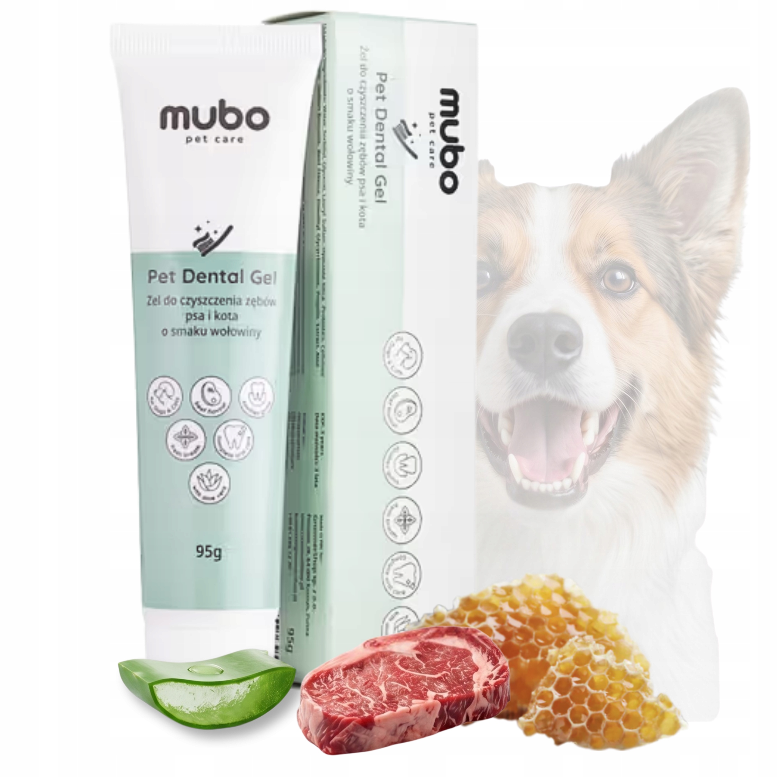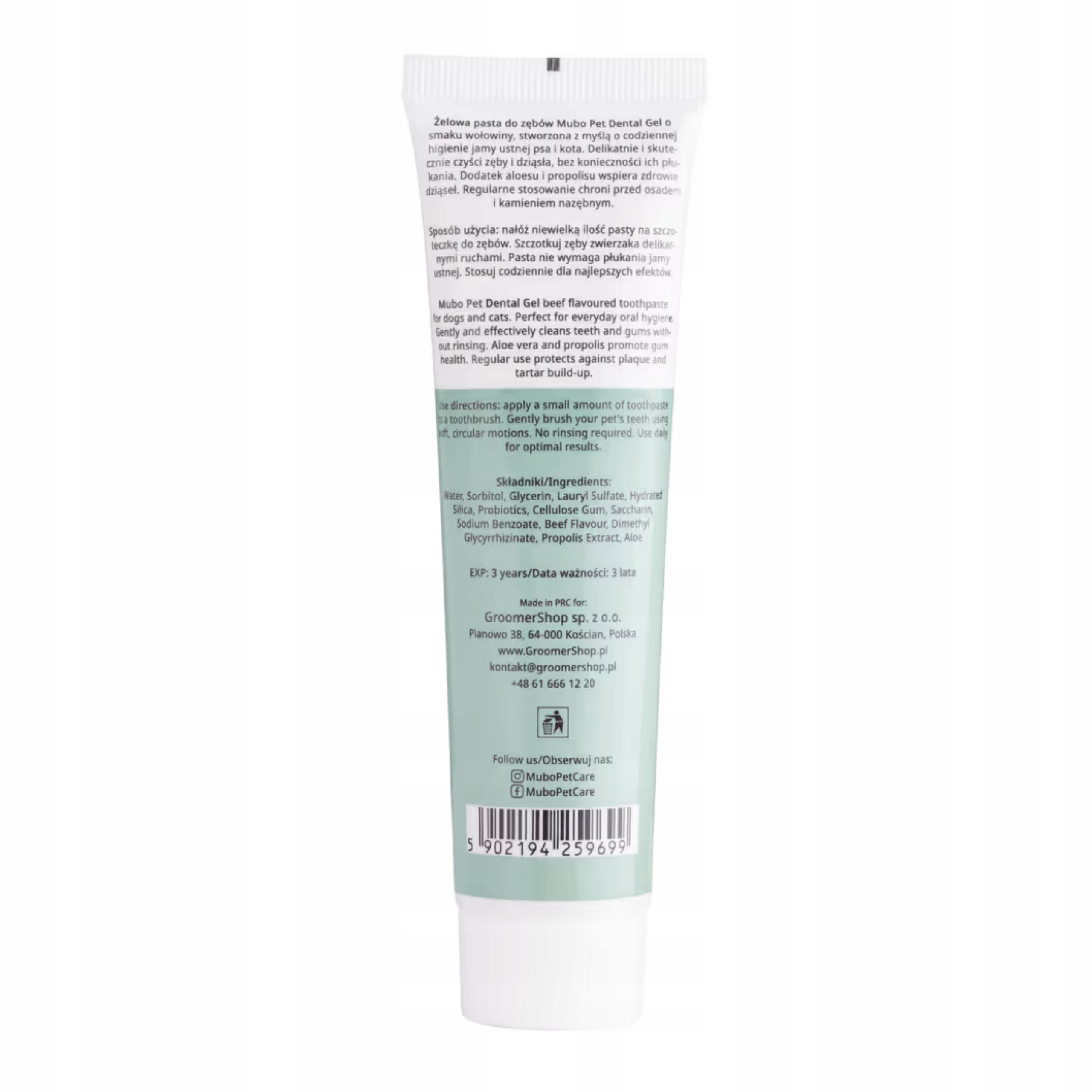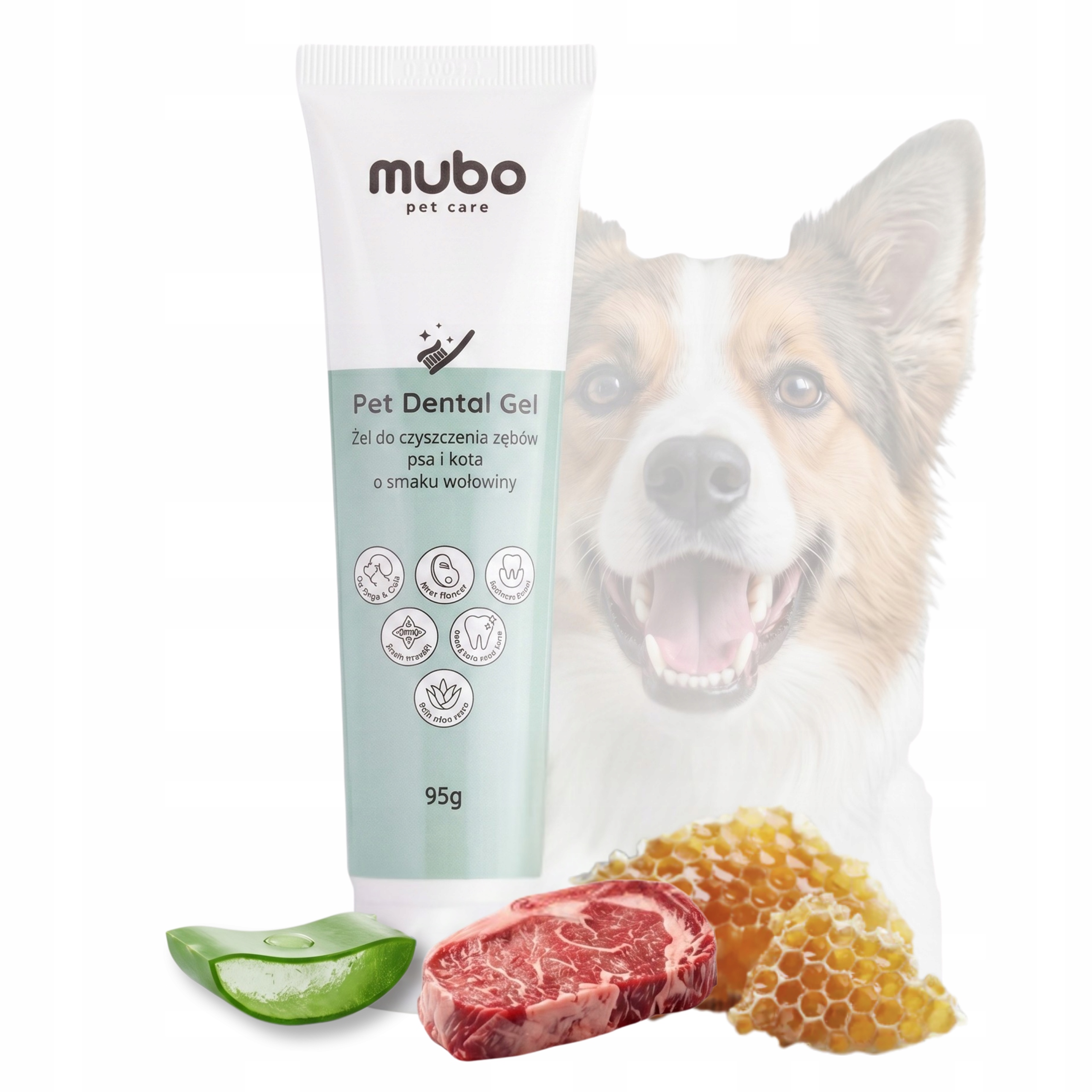 Mubo Żel Pasta do Zębów dla Psa i Kota Smak Wołowiny Aloes Propolis Probiotyki Bez Spłukiwania 95 g
