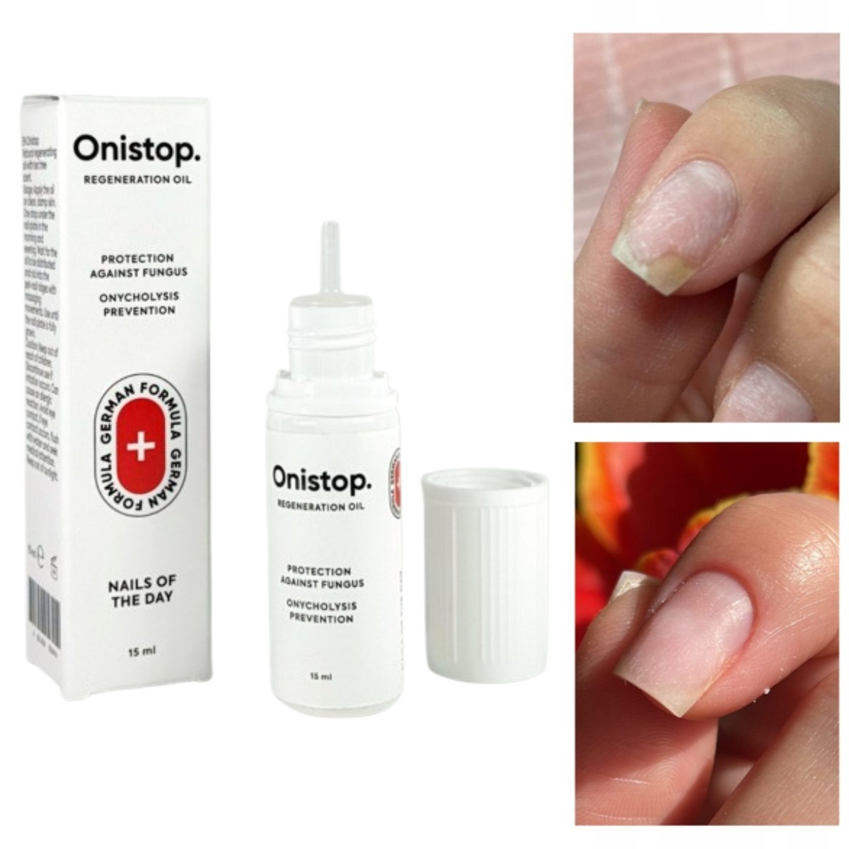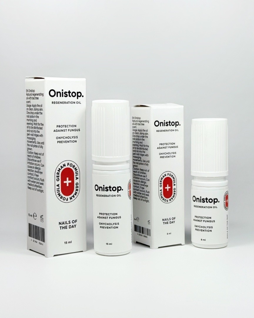 NailsOfTheDay Onistop. to wyjątkowy olejek regenerujący stworzony z myślą o osobach walczących z onycholizą, grzybicą paznokci lub osłabioną płytką paznokciową. Produkt wspiera zdrowy wzrost paznokci, nawilża skórki wokół paznokci, a także pomaga przywrócić estetyczny wygląd nawet mocno uszkodzonym płytkom. Zawiera starannie dobrany zestaw naturalnych olejków eterycznych działających przeciwbakteryjnie, przeciwgrzybiczo i przeciwzapalnie.