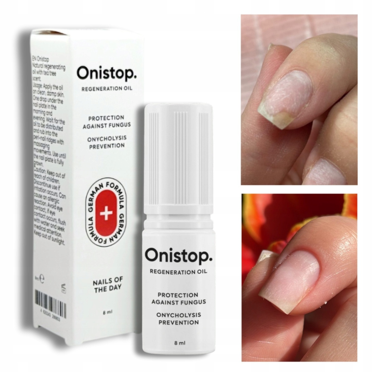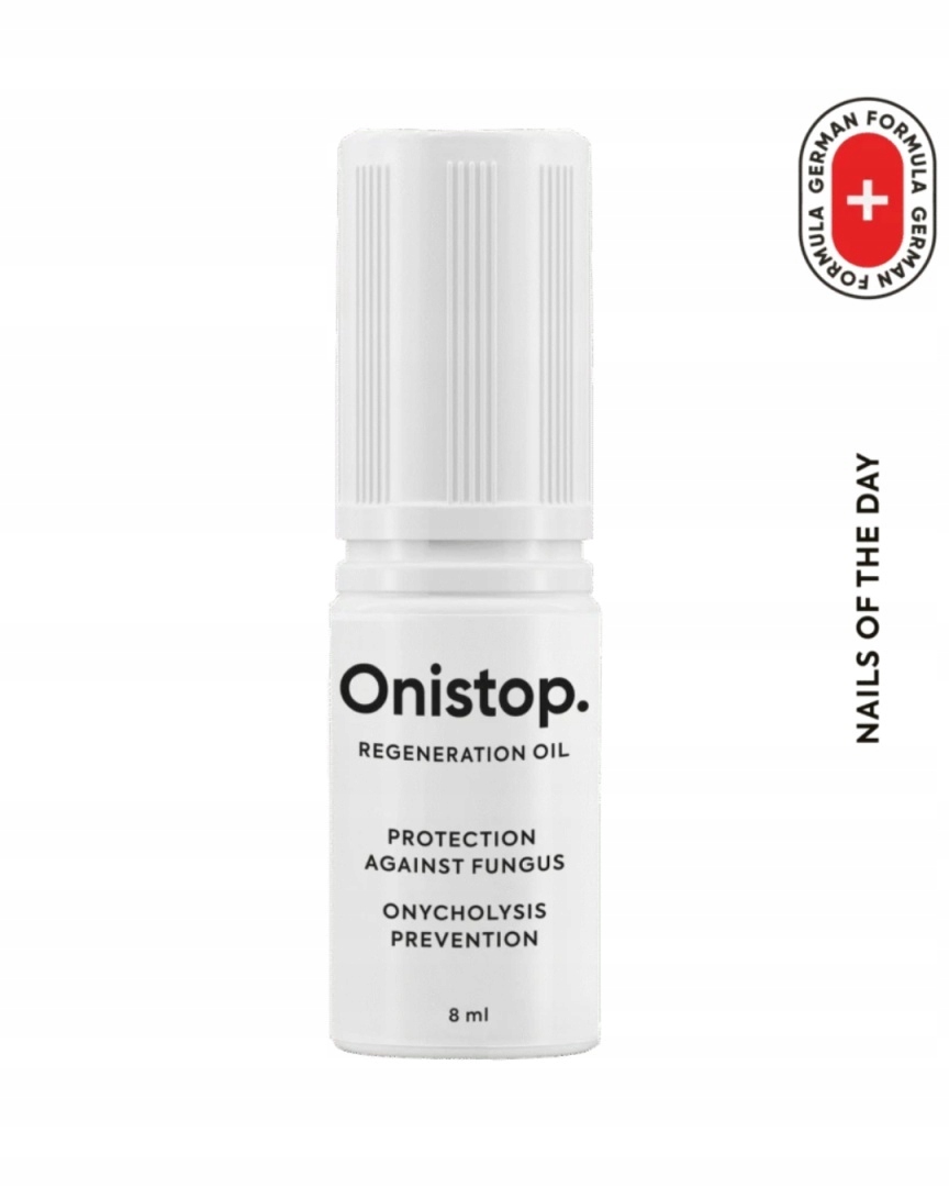 NailsOfTheDay Onistop. to wyjątkowy olejek regenerujący stworzony z myślą o osobach walczących z onycholizą, grzybicą paznokci lub osłabioną płytką paznokciową. Produkt wspiera zdrowy wzrost paznokci, nawilża skórki wokół paznokci, a także pomaga przywrócić estetyczny wygląd nawet mocno uszkodzonym płytkom. Zawiera starannie dobrany zestaw naturalnych olejków eterycznych działających przeciwbakteryjnie, przeciwgrzybiczo i przeciwzapalnie.