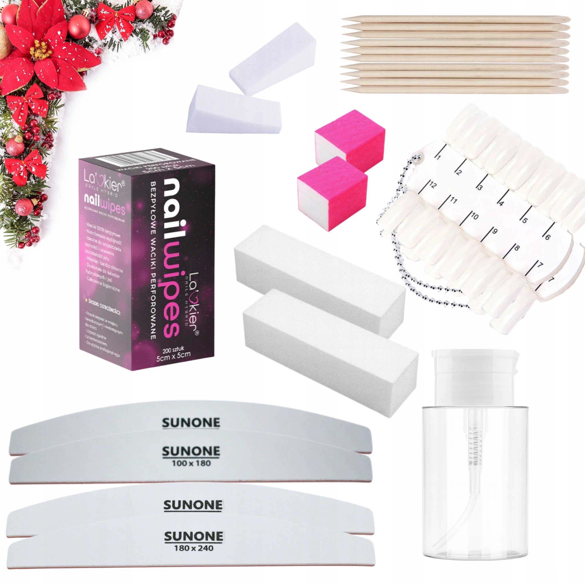 Zadbaj o perfekcyjny świąteczny manicure lub wręcz niezapomniany prezent pod choinkę! Zawiera wszystko, co potrzebne do wykonania profesjonalnego manicure hybrydowego: od lampy i frezarki po lakiery, bazy, topy, ozdoby i akcesoria. Doskonały zarówno dla początkujących, jak i zaawansowanych stylistek.