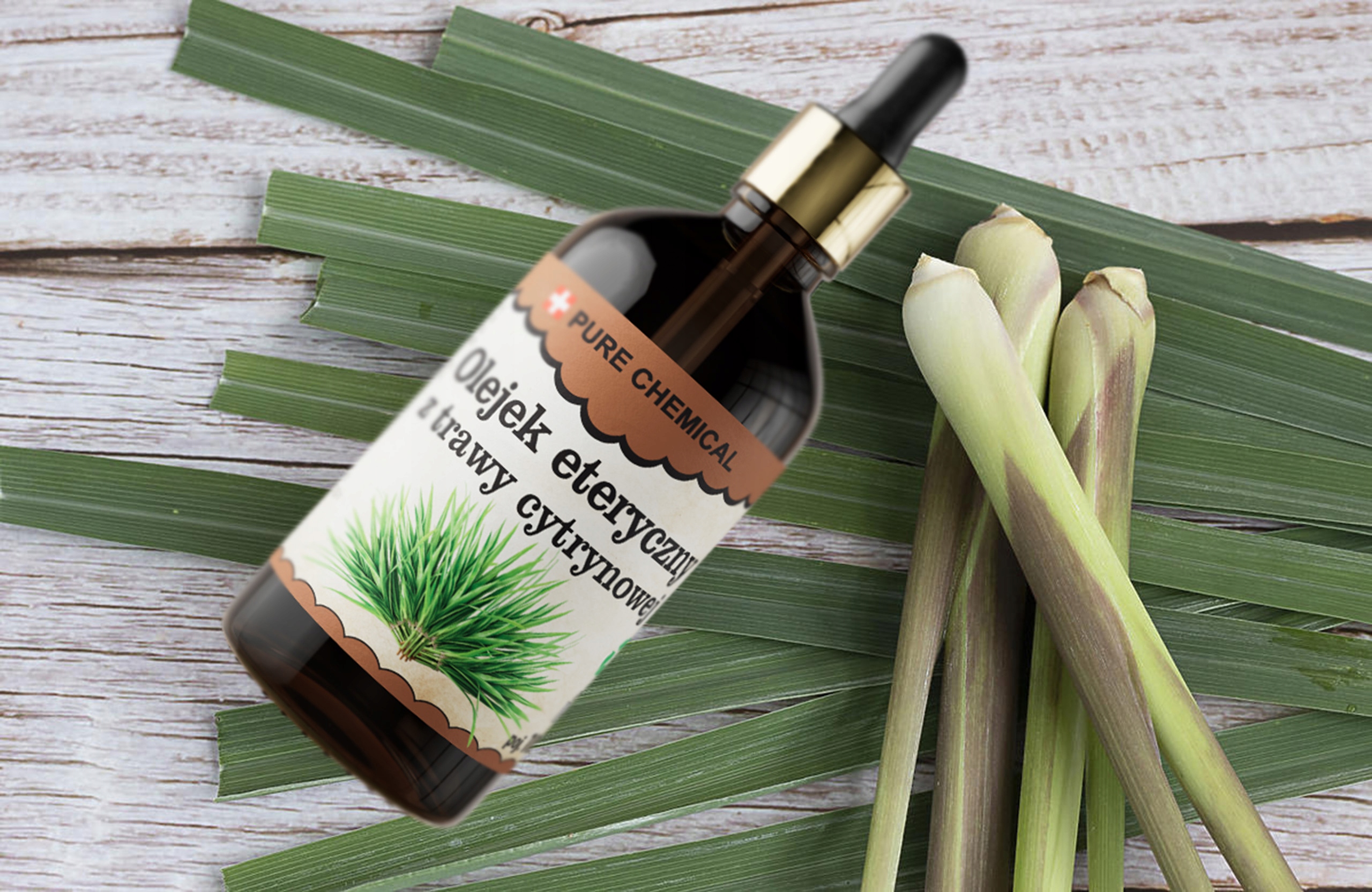 Pure Chemical Olejek eteryczny z trawy cytrynowej Naturalny olejek eteryczny kojący, uspokajający, antybakteryjny, wspiera trawienie 100ml