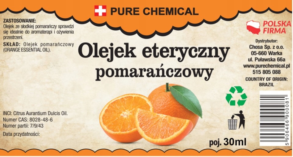 Nasz olejek wywodzi się z soczystych pomarańczy, rosnących w słonecznej Brazylii, gdzie skórki są delikatnie tłoczone, aby zachować ich pełnię aromatu i właściwości. Tradycyjne metody ekstrakcji zapewniają, że każda kropla jest esencją najwyższej jakości.