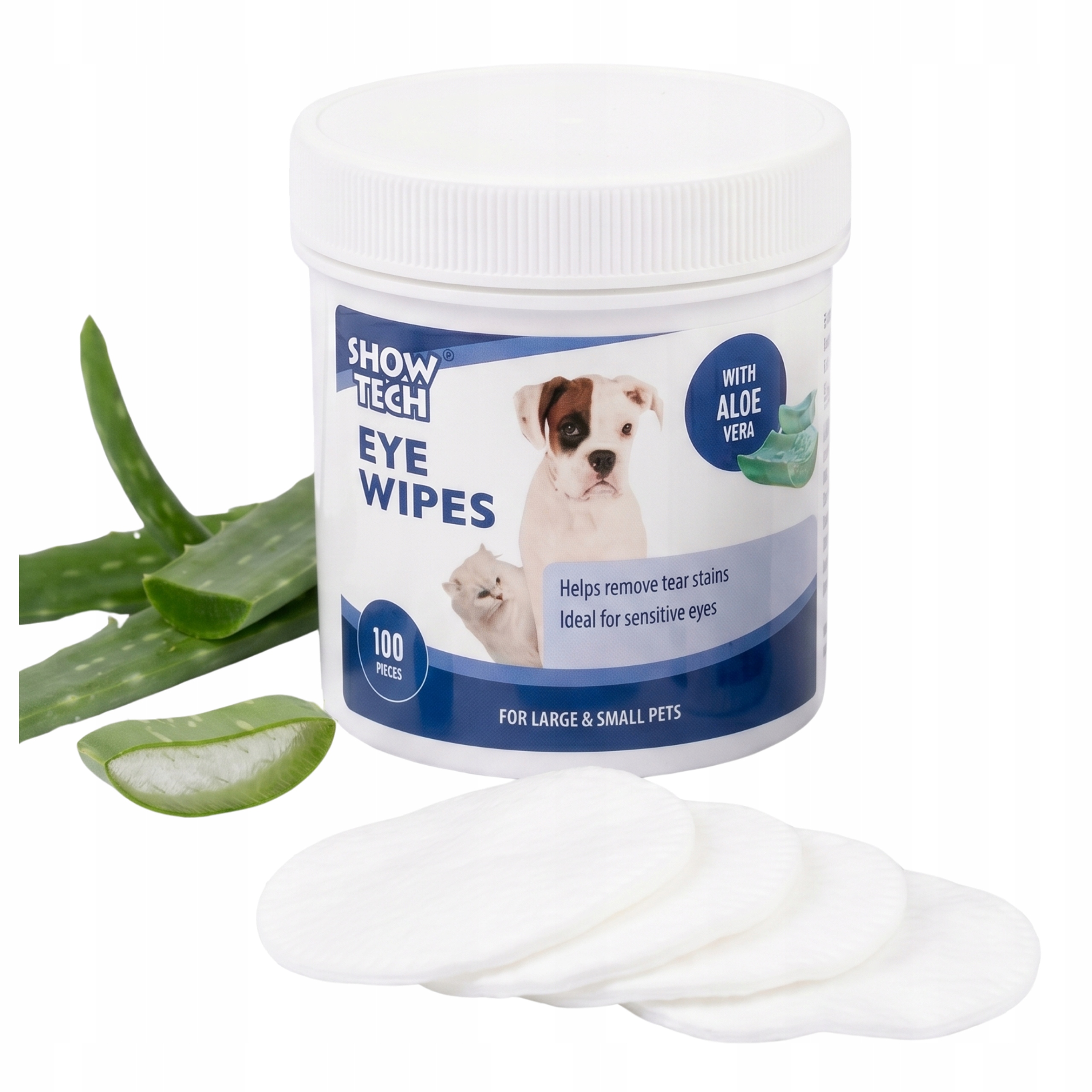 Show Tech Waciki Nawilżane do Higieny Oczu Psa i Kota z Aloesem Przeciwzapalne Usuwają Zacieki Przebarwienia 60 mm 100 szt