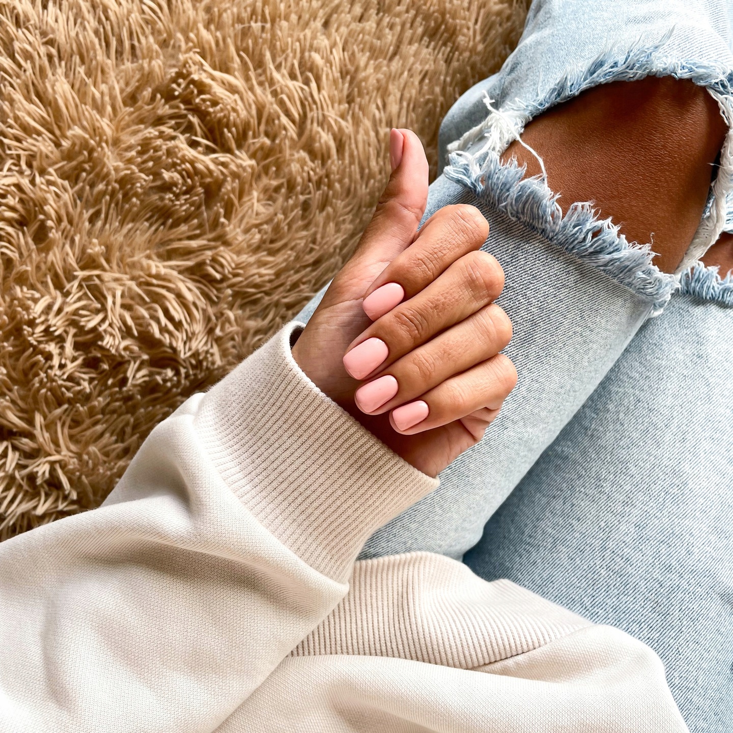 Aby stworzyć szybki i minimalistyczny manicure wystarczy dowolna baza SUNONE oraz Top Milky! Taki minimalistyczny manicure podkreśli piękno Twoich paznokci.