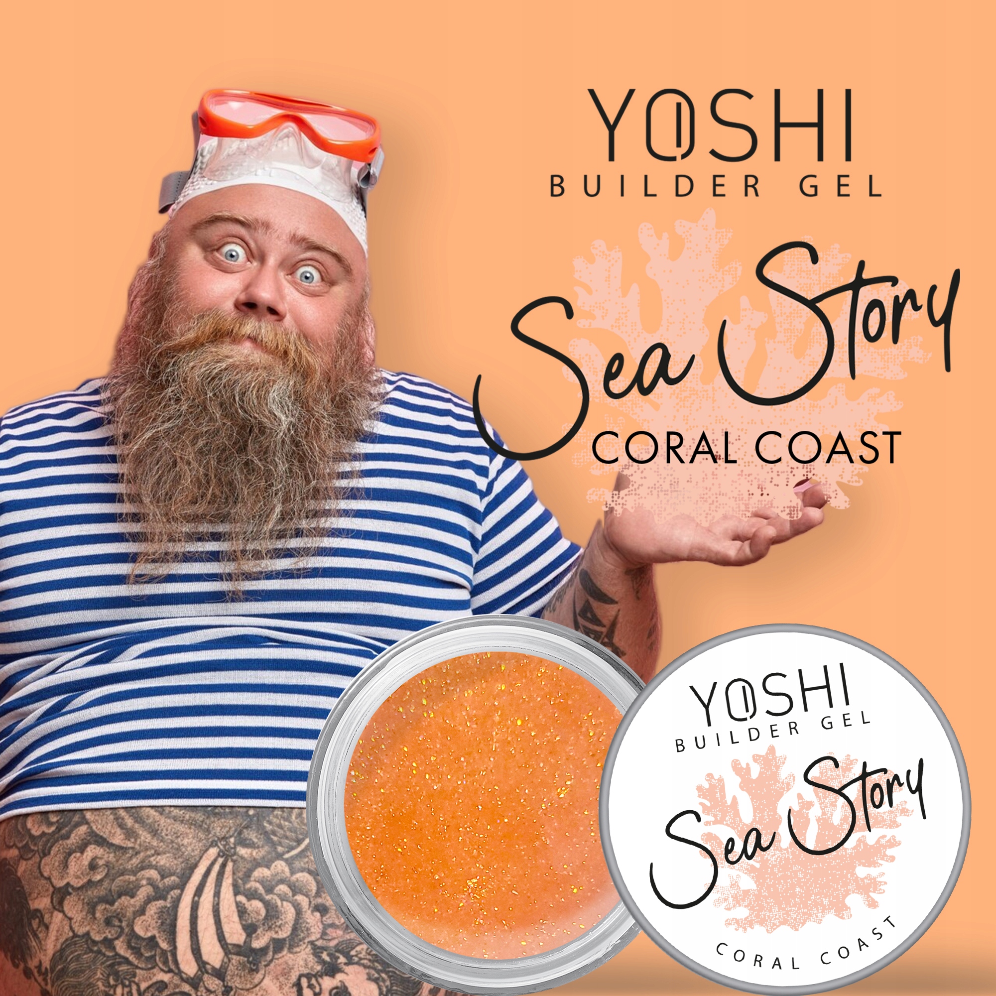 Yoshi Builder Gel Sea Story Coral Coast Żel UV LED budujący samopoziomujący do paznokci z drobiną 15ml