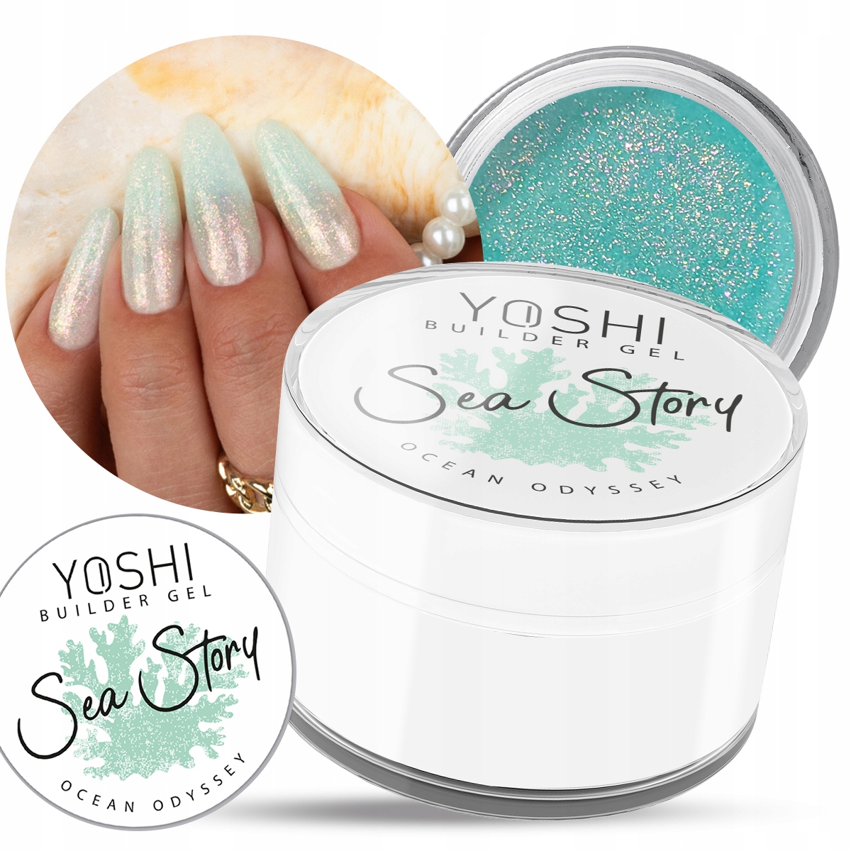 Yoshi Builder Gel Sea Story Ocean Odyssey Żel UV LED budujący samopoziomujący do paznokci z drobiną 15ml
