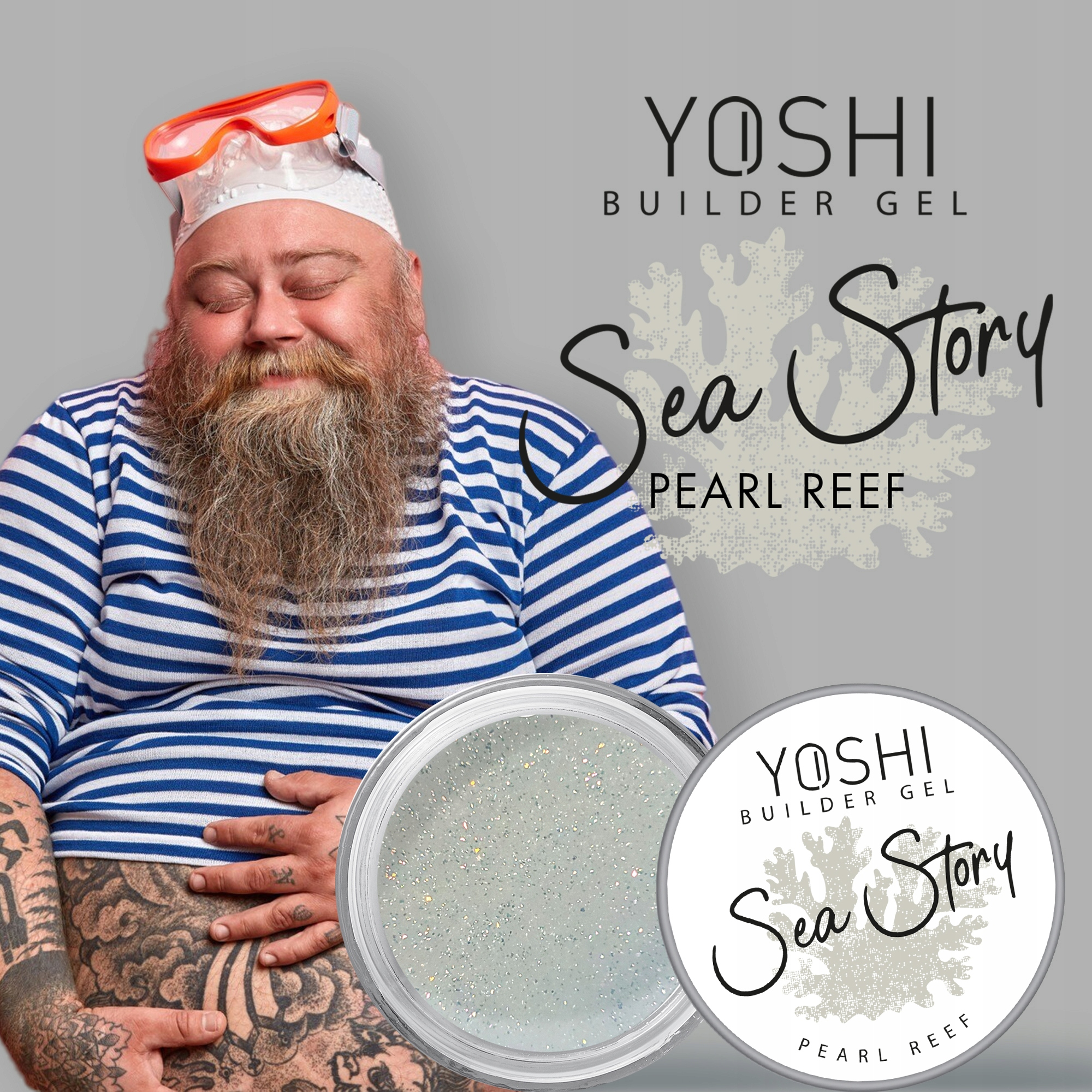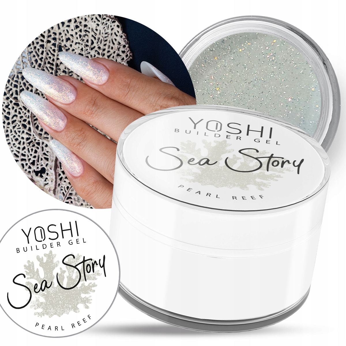 Yoshi Builder Gel Sea Story Pearl Reef Żel UV LED budujący samopoziomujący do paznokci z drobiną 15ml