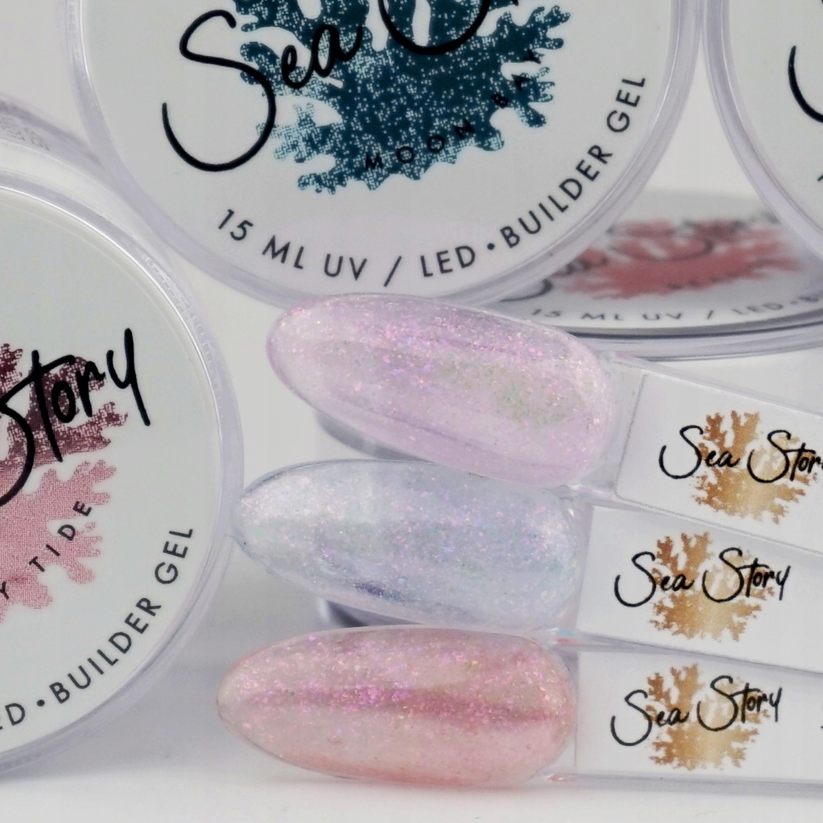 Kolekcja "Sea Story" - przedstawiamy nową, ekskluzywną serię żeli budujących z drobiną, która zawiera pięć oszałamiających kolorów, przenoszących stylizacje paznokci na zupełnie nowy poziom. Każdy żel w tej serii to unikalne połączenie wysokiej jakości i niezrównanego blasku, idealne do różnych technik i stylizacji. Nasze żele doskonale sprawdzają się przy budowie, przedłużeniu oraz uzupełnieniu paznokci. Dzięki lekko samopoziomującej formule są łatwe w aplikacji, gwarantując idealne wygładzenie powierzchni. Każdy kolor w serii „Sea Story” zawiera wielobarwne drobiny, tworzące niesamowity efekt opalizujący, który sprawia, że paznokcie wyglądają pięknie.