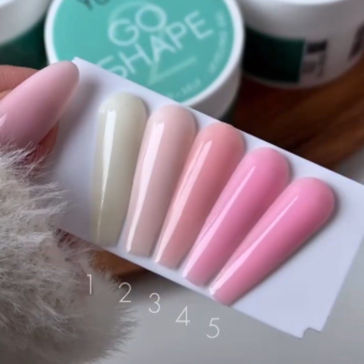 Yoshi Go Shape No5 Twardy żel do przedłużania paznokci samopoziomujący wyraźny różowy 50ml