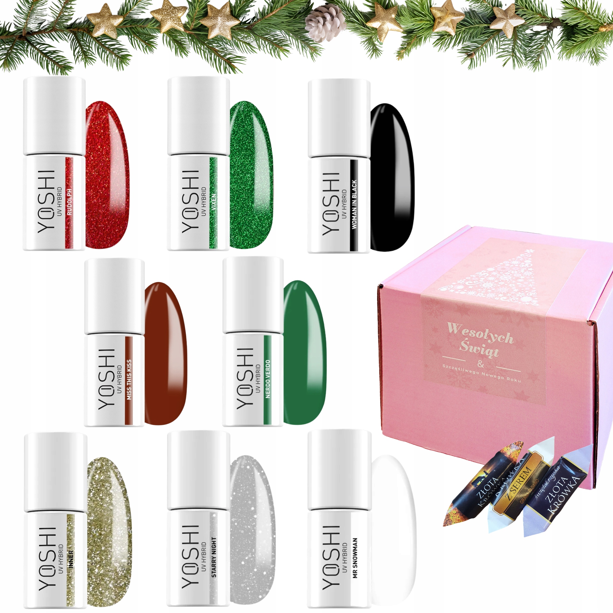 Yoshi Świąteczny zestaw do paznokci hybrydowych + gratis