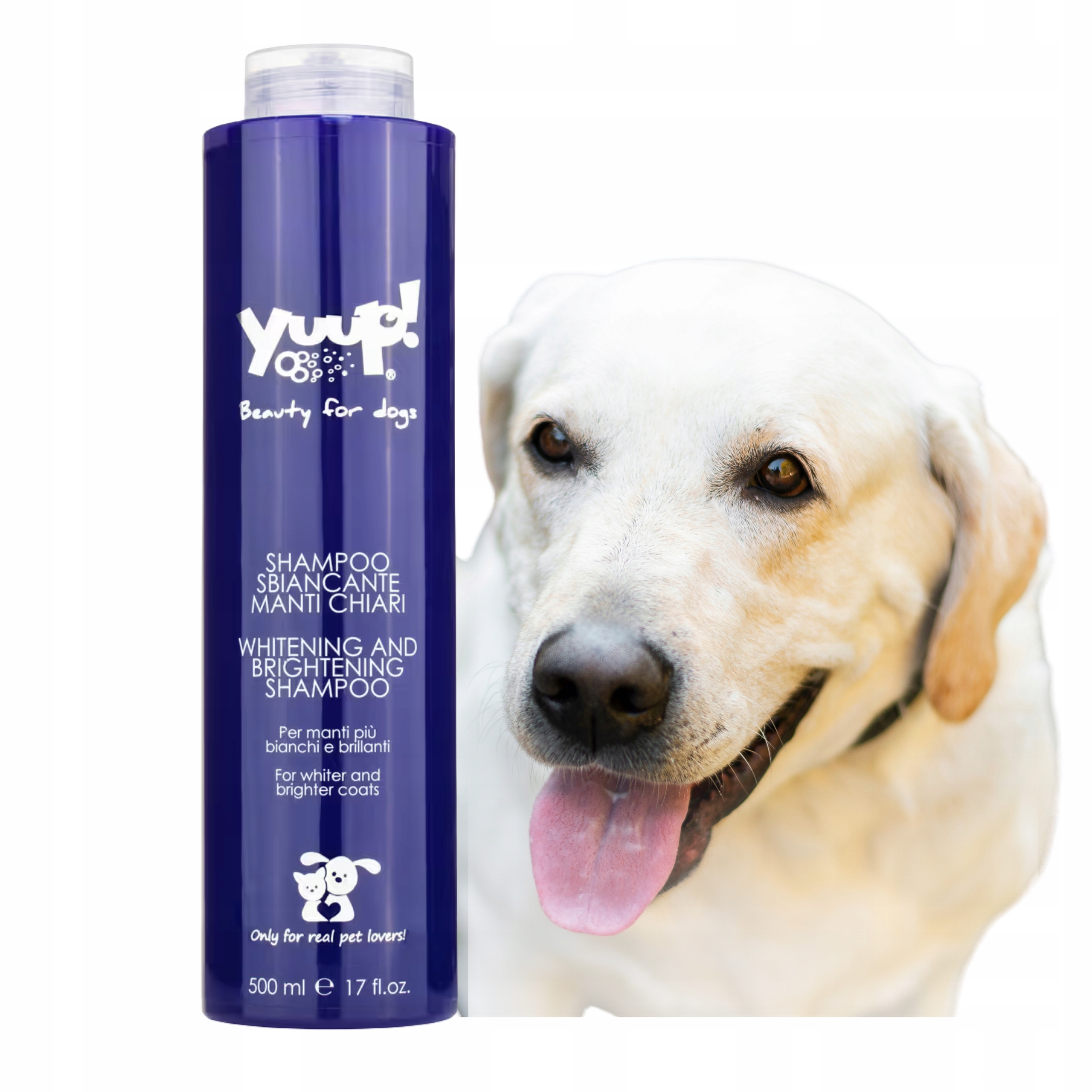 Yuup! Szampon Rozjaśniający dla Psów i Kotów do Białej Jasnej Srebrnej Sierści Usuwa Zażółcenia Keratyna Pantenol 500 ml