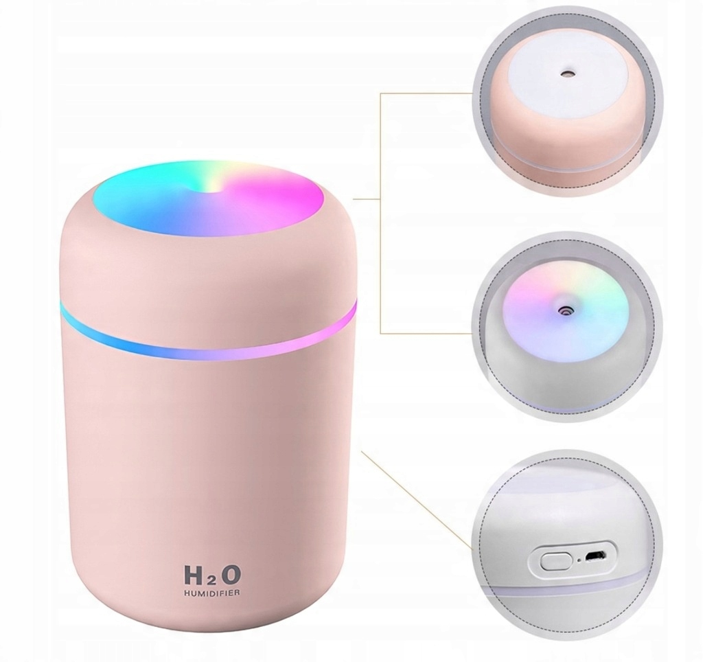 - Podświetlany LED zbiornik wody (z możliwością całkowitego wyłączenia), pełniący funkcję lampki nocnej.
