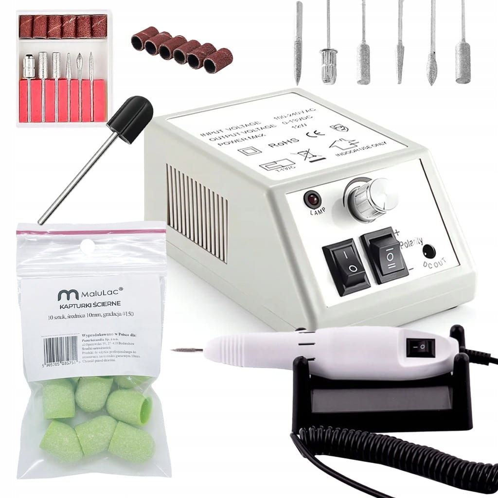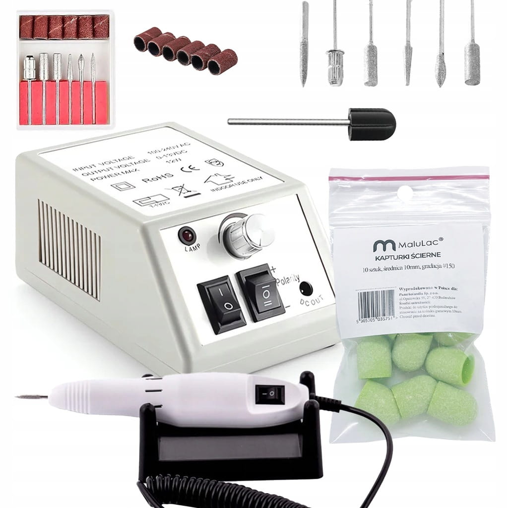Zestaw do paznokci - frezarka do manicure i pedicure + kapturki + nośnik gumowy