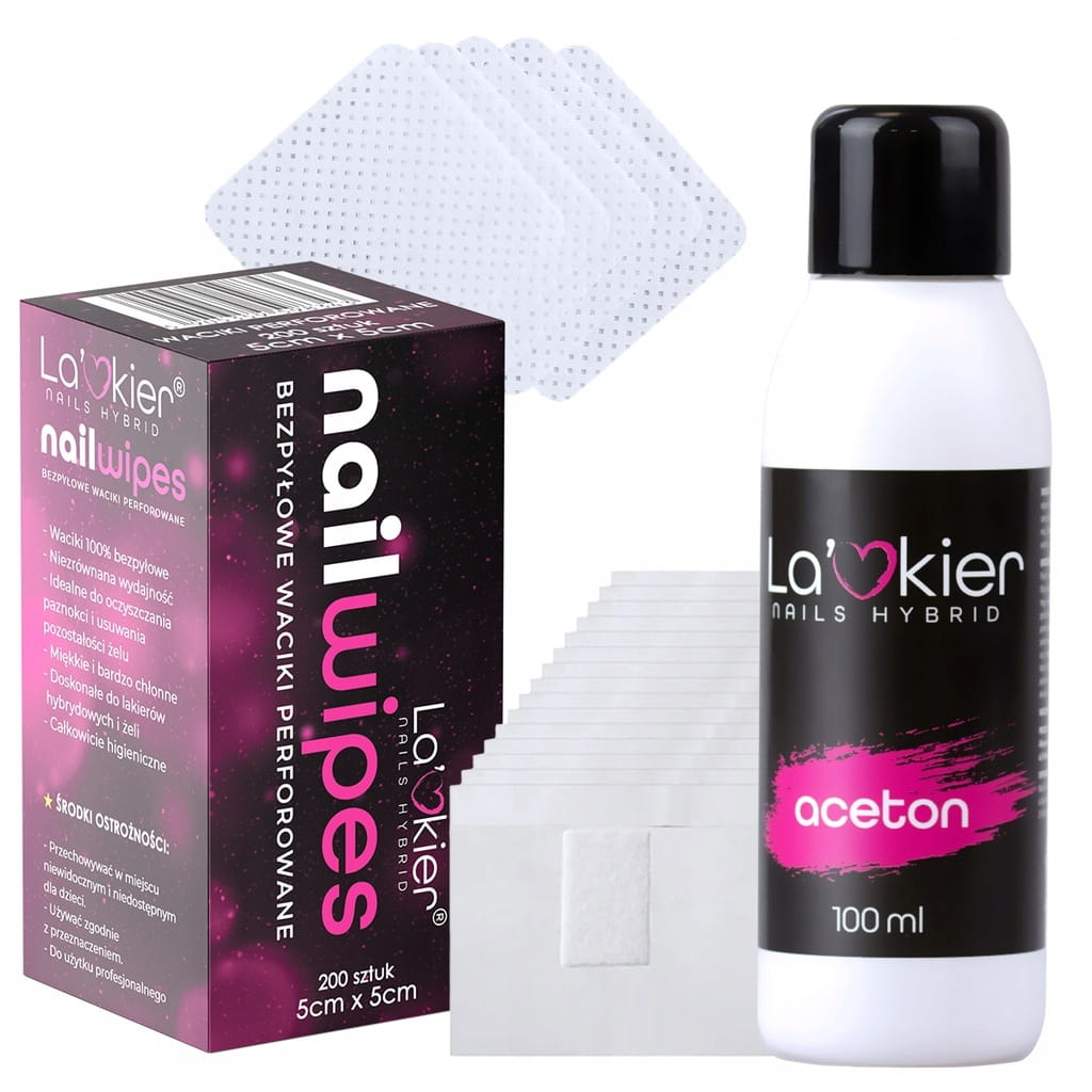 Zestaw do ściągania hybryd La'kier - waciki bezpyłowe + aceton + folia